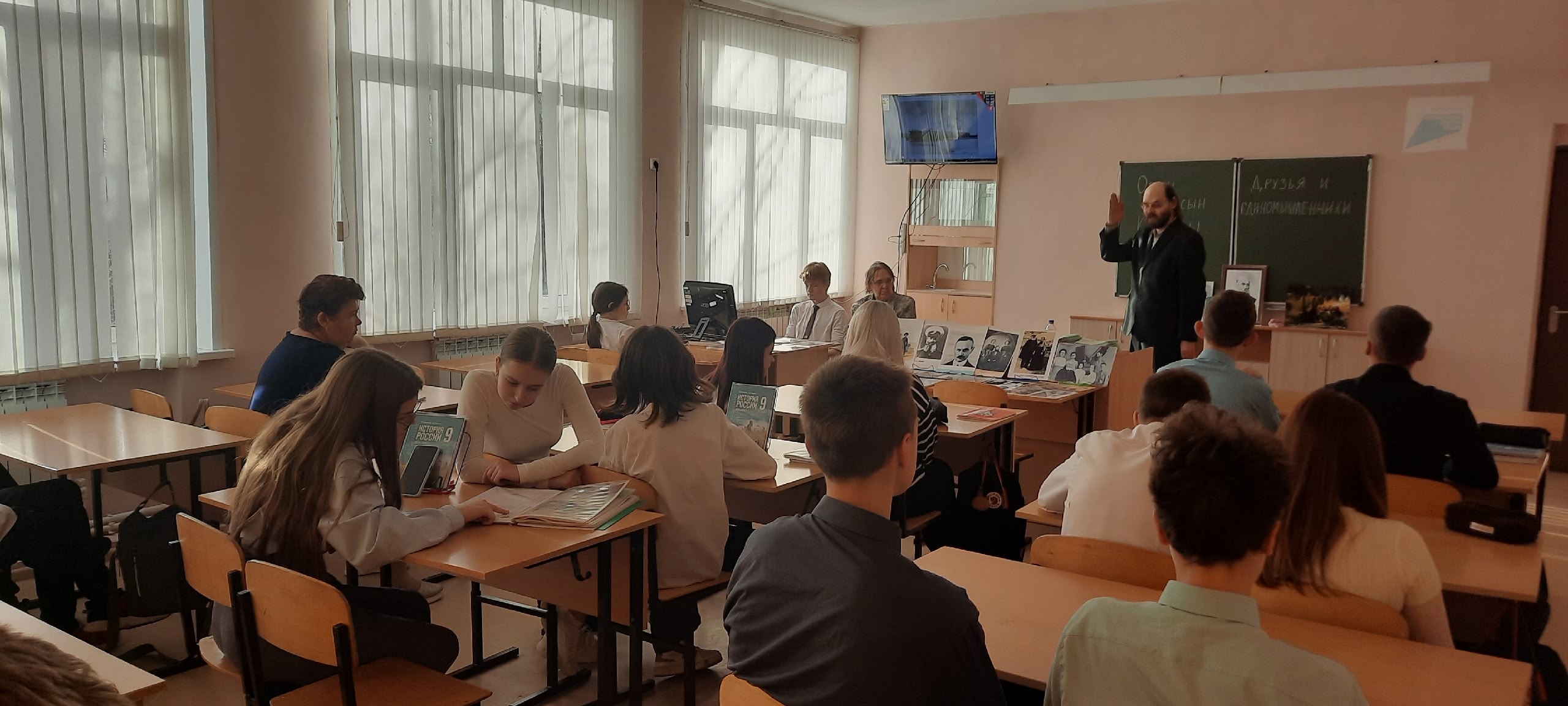 Сегодня в МБОУ «СОШ № 2» Алатырского МО ЧР состоялась краеведческая лекция сотрудника МБУК «АЦБС» г. Алатырь, краеведа Михаила Сергеевича Скрипина на тему «Отец и сын Крыловы: друзья и единомышленники».
