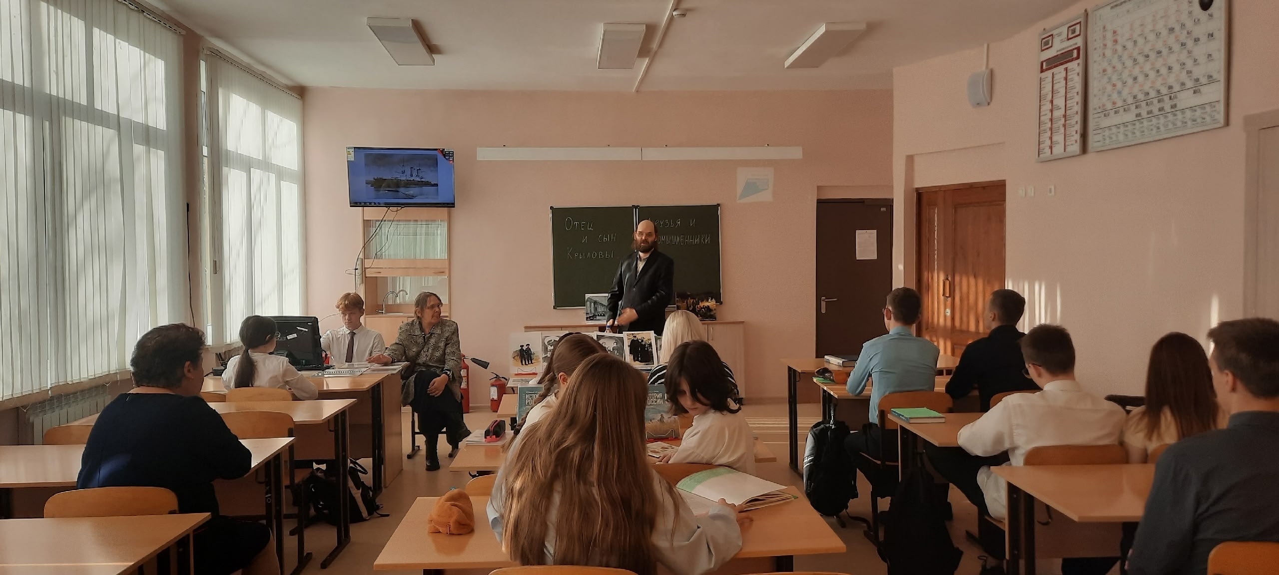В ходе лекции были представлены редкие архивные материалы и фотографии, иллюстрирующие жизнь и деятельность семьи Крыловых. Обучающиеся 9 а класса проявили живой интерес к представленной информации, ведь она имеет тесную связь с пройденным материалом по предмету «история» в 9 классе.