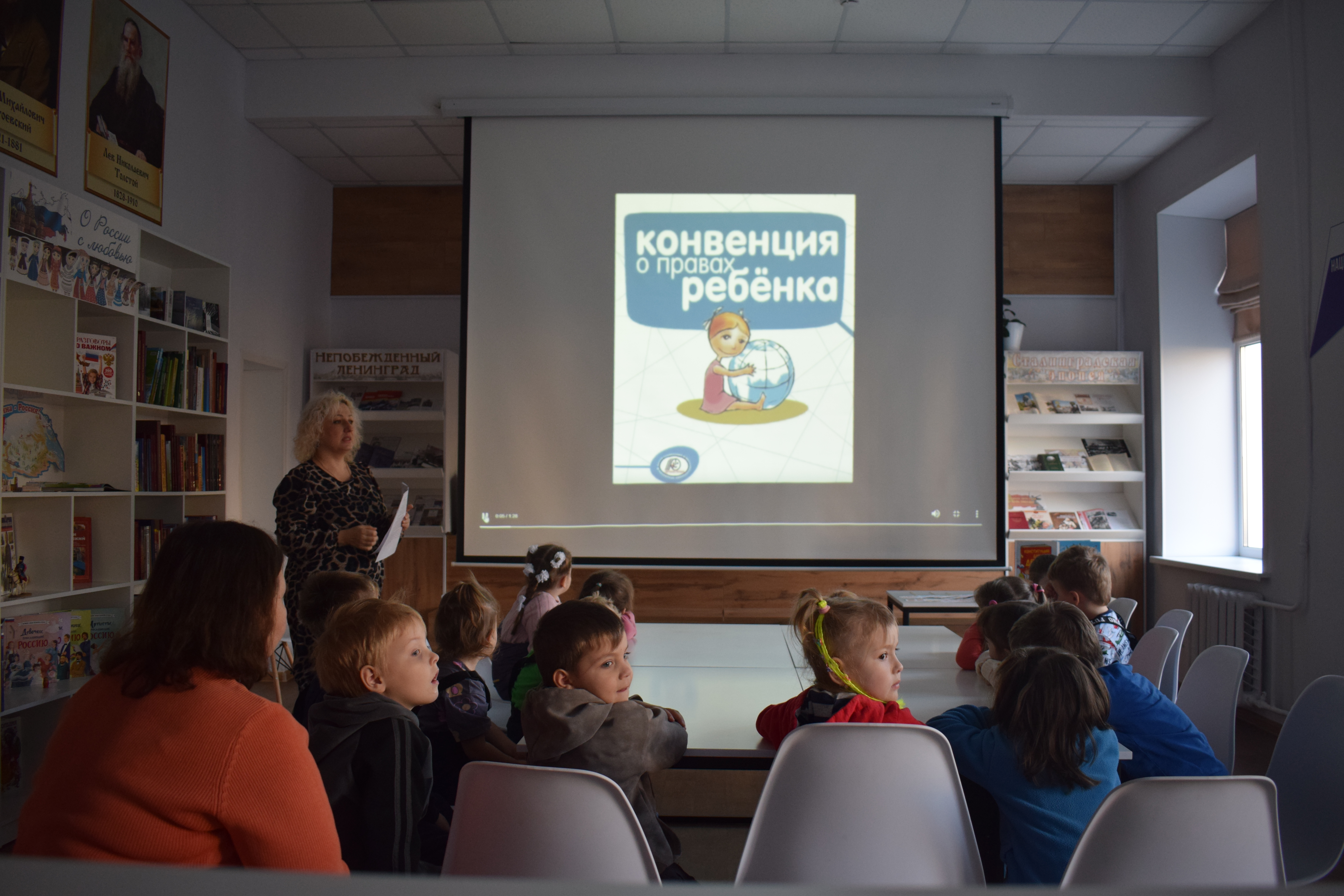 Библиотекарь рассказала присутствующим о Всемирном дне прав ребенка и познакомила с международной Конвенцией о правах ребенка. Дети узнали о том, что все права и обязанности граждан России узаконены в Конституции – основном законе нашей страны.