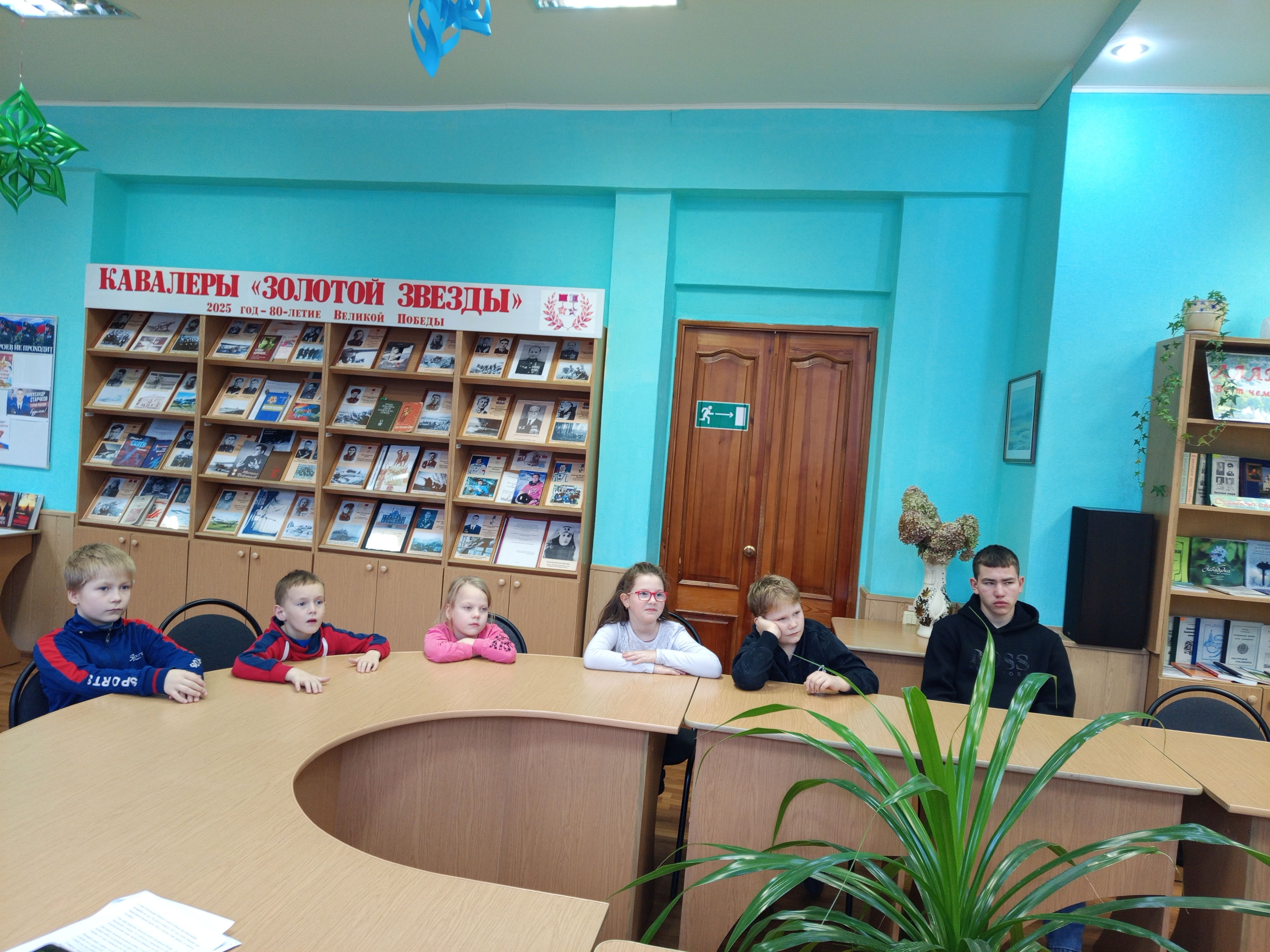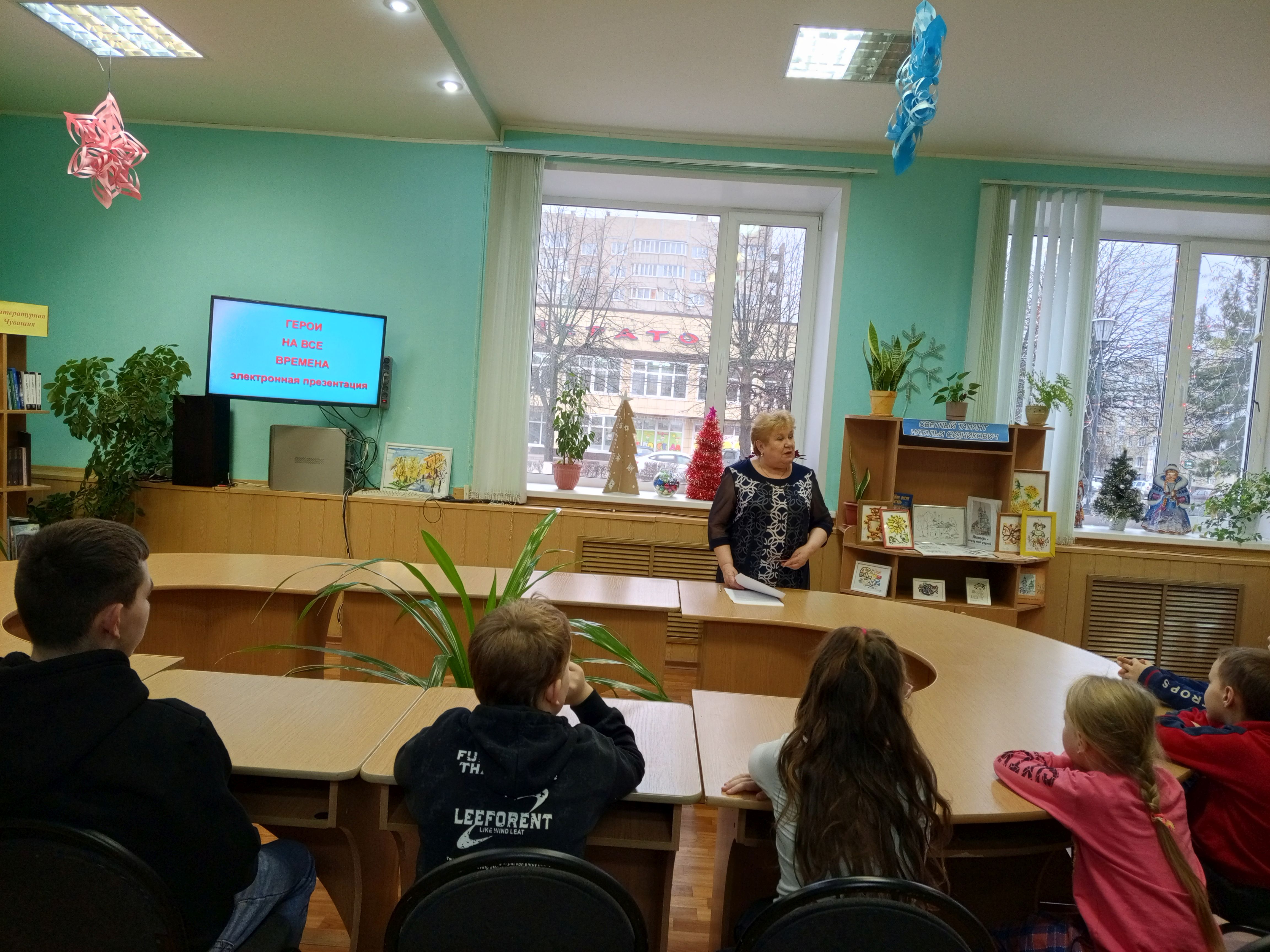 В центральной городской библиотеке для ребят из Алатырского комплексного центра социального обслуживания населения прошёл урок мужества «Славные сыны Отечества». Ребята познакомились с историей праздника, узнали имена героев со времен древней Руси, легендарными полководцами Отечественной войны 1812 г., а также героями Великой Отечественной войны 1941-1945 г., земляками-участниками Афганской, Чеченской войн. В ходе беседы шёл разговор о Героях современной России, кто порой ценой собственной жизни сражался и сражается за наше счастливое будущее и мирное небо над головой.