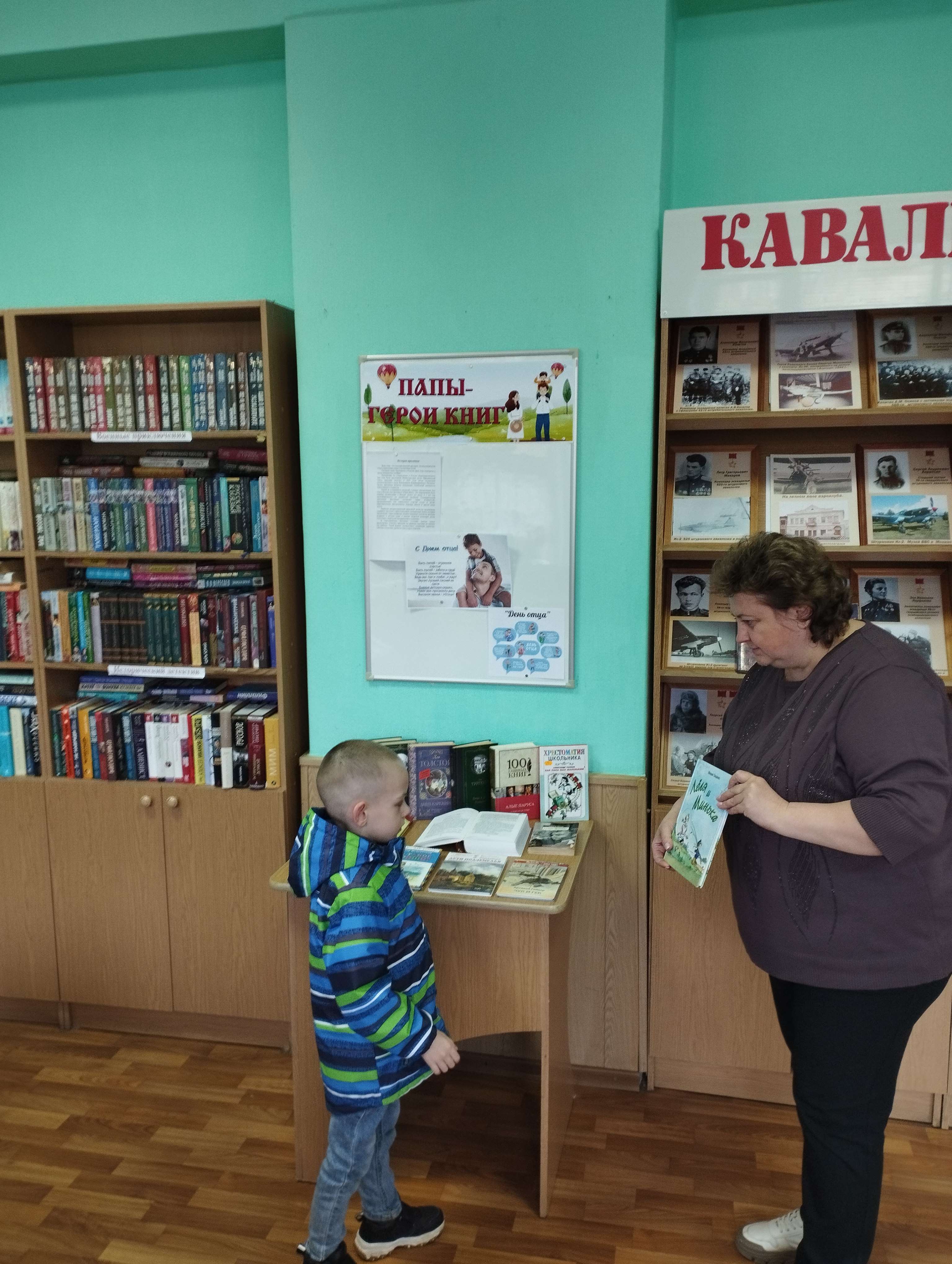 В преддверии праздника для читателей центральной городской библиотеки прошёл обзор книжной выставки «Папы – герои книг». На выставке были представлены книги для прочтения, в которых главный герой и пример для подражания - отец: «Голубая чашка» А. Гайдара, «Мой добрый папа» В. Голявкина, «Денискины рассказы» В. Драгунского и другие, а также произведения русских писателей-классиков: М. Шолохова, Л. Толстого, И. Тургенева и др., в которых раскрывается образ отца.