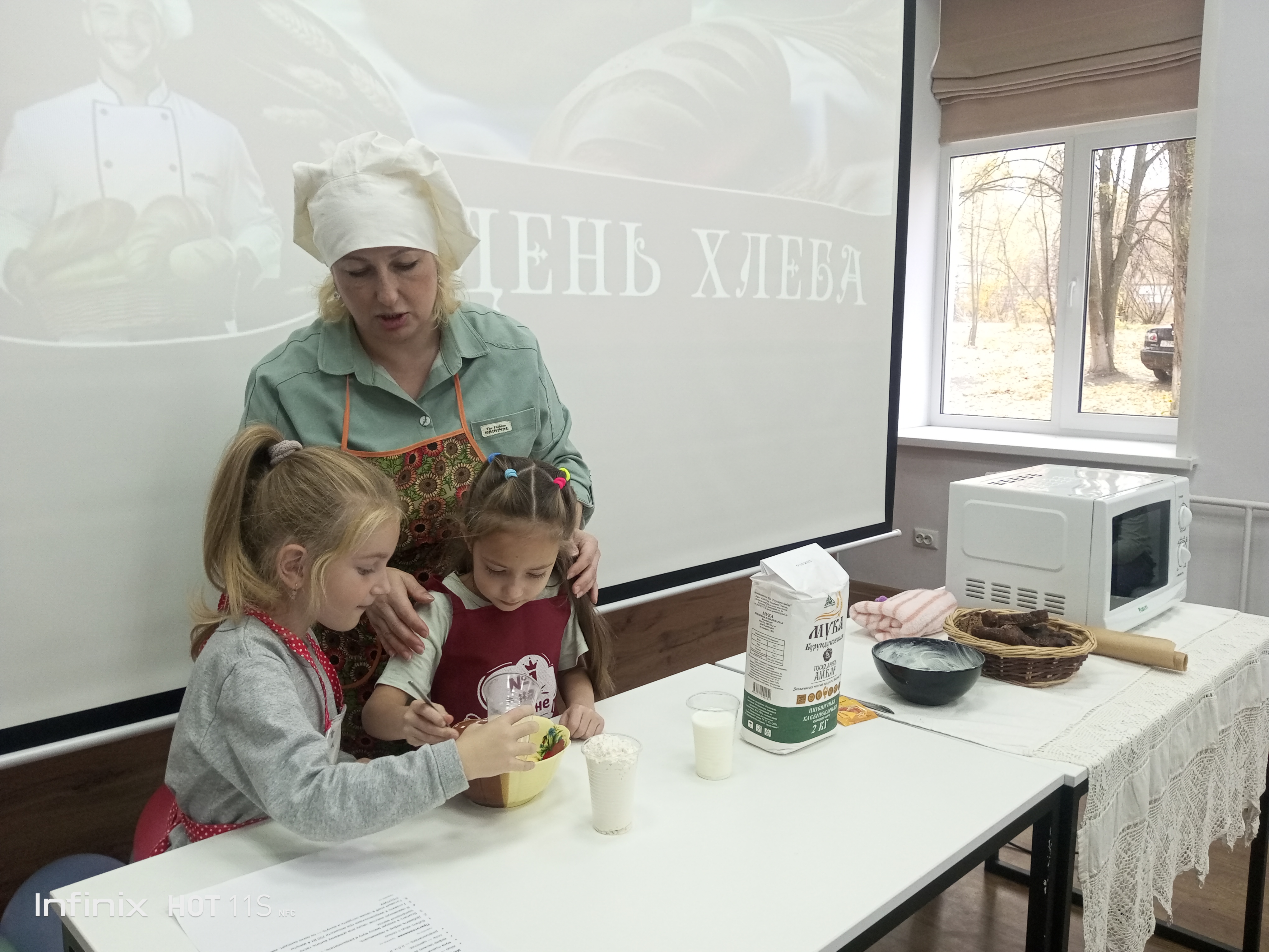 Ну, а самым запоминающимся моментом стало, конечно же, приготовление хлеба своими руками! Под чутким руководством библиотекарей ребята замесили тесто, придали ему форму и отправили в печь (микроволновую). Аромат свежеиспеченного хлеба наполнил всю библиотеку, создавая атмосферу тепла и уюта.