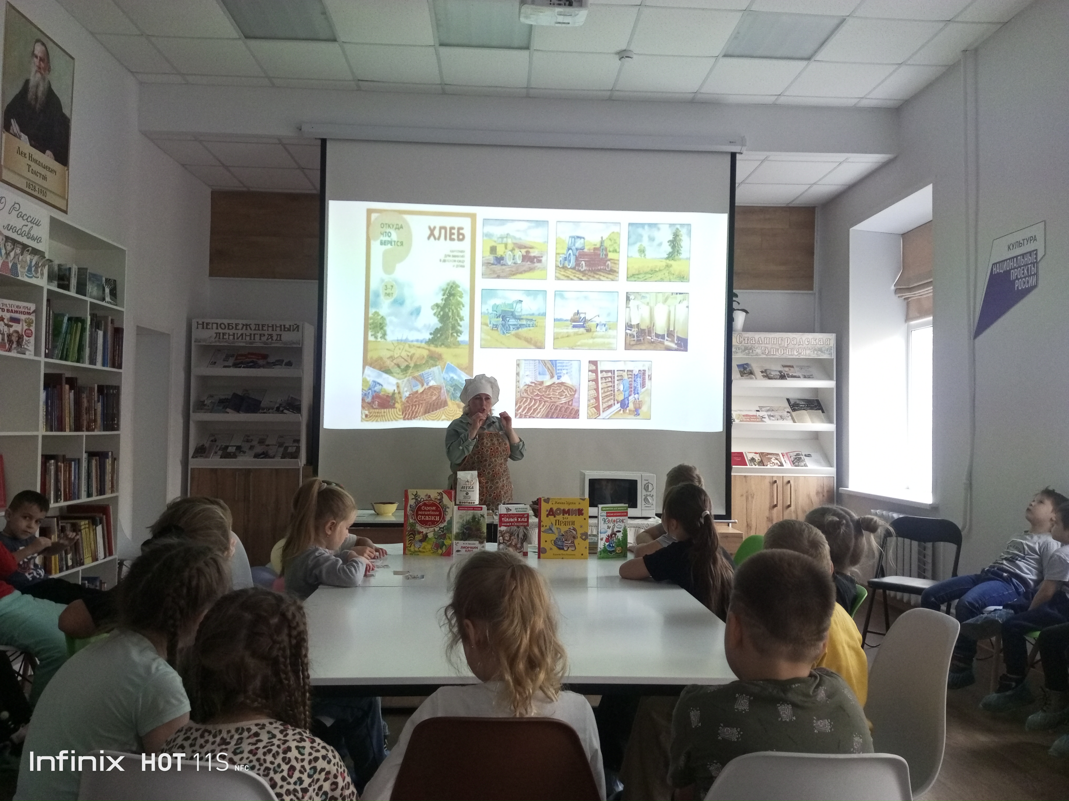 Сотрудники библиотеки постарались сделать этот день незабываемым для малышей из детского сада «Колокольчик». Мы рассказали им об истории хлеба на Руси, о том, как он всегда был символом достатка и благополучия. Вспомнили и о его роли в народных традициях и обычаях, ведь хлеб сопровождал человека на протяжении всей жизни.